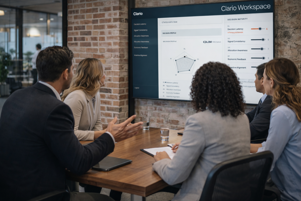 The patterns Clario diagnoses, slow decisions, fragmented signals, misaligned incentives, resources locked past opportunities, were observed firsthand, at scale, across functions and leadership layers.